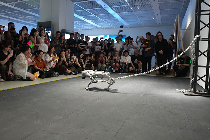 本次展览的做品囊括了及时交互、行为表演、机械表演、不雅念艺术、具身智能、动态安拆、将来摄影、不雅念国画、哲学说唱、AI 交响乐、汉字艺术、影像安拆等横跨多沉前言谱系的做品。